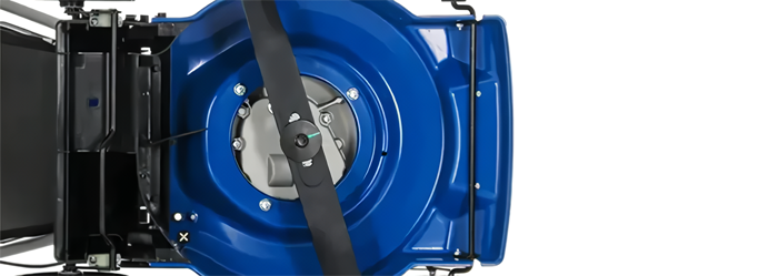 Режущую систему приводит в движение четырехтактный одноцилиндровый двигатель мощностью 2,8 л.с. объемом 100 см3, обеспечивающий вращение со скоростью до 2800 об/мин. Праймер облегчает холодный запуск двигателя. Для безопасности предусмотрена система контроля присутствия оператора — газонокосилка работает, только когда вы удерживаете рычаг остановки двигателя.