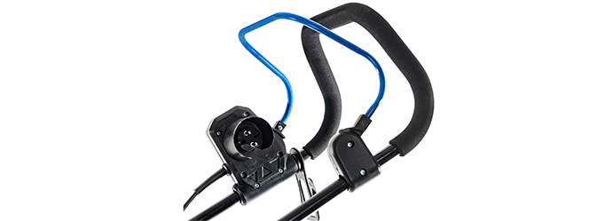 Ширина газонокосилки небольшая – 41,7 см, что позволяет без проблем проходить узкие места. Компактная конструкция удобна для хранения и перевозки. Если вы убираете косилку на сезонное хранение или собираетесь перевозить ее в багажнике, сложите ручку вдоль корпуса, а контейнер для травы снимите и положите сверху. Благодаря мягким тканевым стенкам травосборник легко примет нужную форму.