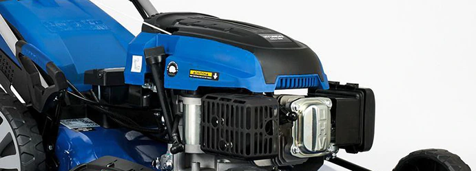 Бензиновая газонокосилка Hyundai наиболее эффективна на обширных газонах с небольшим количеством объектов. Четырехтактный двигатель мощностью 5,6 л.с. обеспечивает высокую скорость вращения ножа и эффективное кошение даже высокой, густой и влажной травы.