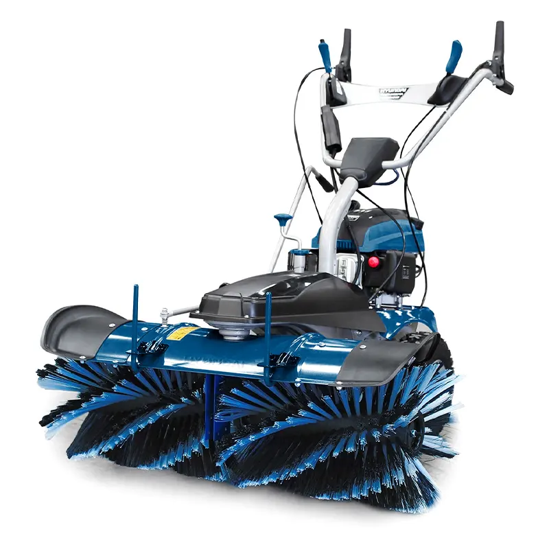 В зависимости от интенсивности загрязнения, глубины снежного покрова и других особенностей объекта можно настроить силу прижатия щетки к поверхности. Для регулировки скорости передвижения бензинового уборщика достаточно выбрать одну из трех передач. Для движения назад и разворота предусмотрена задняя скорость.