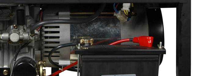 Генератор быстро и легко запускается поворотом ключа в замке зажигания. Встроенный аккумулятор емкостью 45 Ач, обеспечивающий питание электростартера, подзаряжается во время работы двигателя. На панели управления находится кнопка «Подогрев». При ее нажатии для формирования топливной смеси поступает уже теплый воздух. Это облегчает запуск двигателя на морозе.