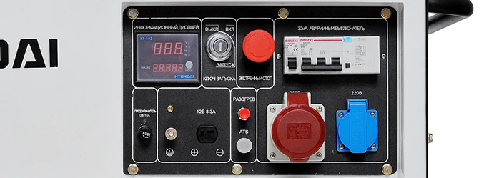 Подключается дизельная электростанция Hyundai DHY 6000SE-3 как к однофазным, так и к трёхфазным потребителям. Две силовые розетки на 230 В и 400 В обеспечивают питание энергозатратного оборудования даже с высокими пусковыми токами. Для быстрого запуска, в случае аварийной ситуации, предусмотрена возможность подключения автоматического блока.