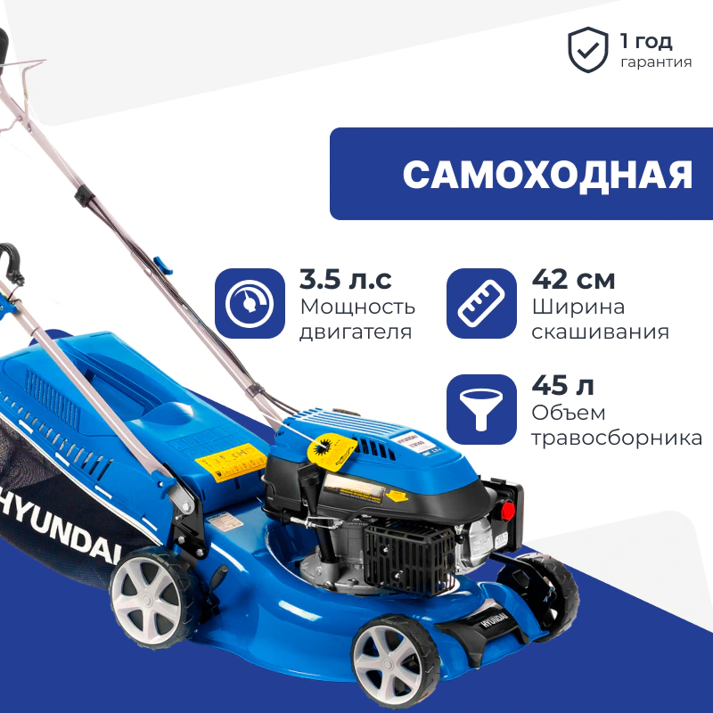 Hyundai L 4310S предназначена для владельцев частных домов и дачников. С бензиновой газонокосилкой Hyundai вы подравняете траву на участке площадью до 1500 м². Благодаря наличию привода на задние колеса машина движется самостоятельно, поэтому уход за газоном превращается в приятную прогулку на свежем воздухе.