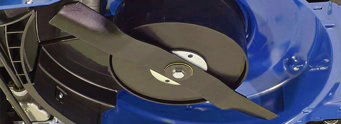 Прочный стальной нож хорошо режет как мягкую свежую зелень, так и жесткую поросль. Ширина среза за один проход составляет 52,5 см. Конструкция лезвия с изогнутыми краями позволяет создать вихревой воздушный поток для более эффективного кошения и плотной набивки травосборника.