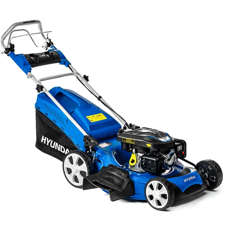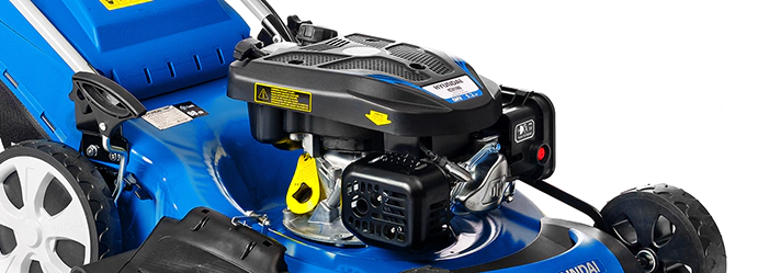 Управление работой двигателя и режущей системой выполняется при помощи двух прижимных рычагов, которые можно удерживать одной рукой. Если вы отпустите рукоятку, бензиновая газонокосилка Hyundai остановится и нож перестанет вращаться. Двигатель заводится без проблем благодаря системе легкого запуска.