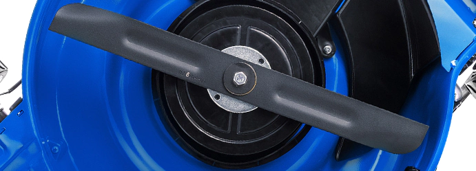 Работу газонокосилки с турбиной и ножом аэродинамической формы можно сравнить с действием пылесоса. Нож выполнен из высокопрочной стали, имеет закрылки, создает вихревой поток, который на 30% увеличивает наполняемость травосборника. Острое лезвие с одинаковой легкостью справится как с мягкой газонной травой, так и с жесткими сорняками. Ширина кошения составляет 55 см.