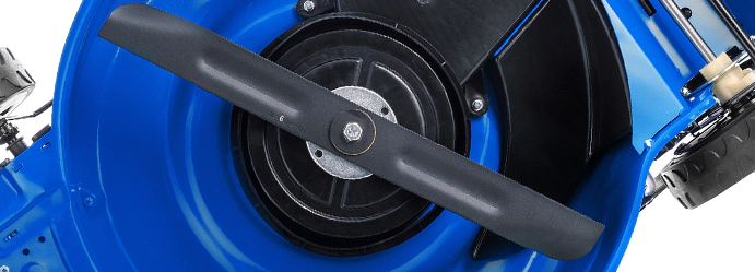 В газонокосилке Hyundai L 5520S установлен нож аэродинамической формы с двумя лопастями. При вращении он образует воздушный поток, который приподнимает траву во время реза. Это обеспечивает ровную стрижку даже влажной растительности.