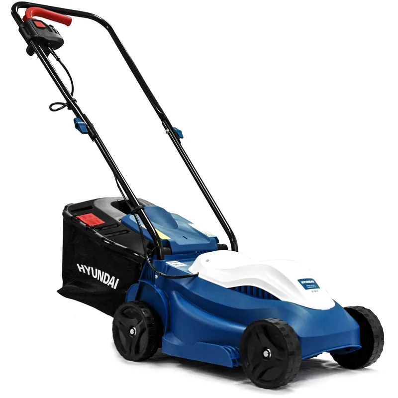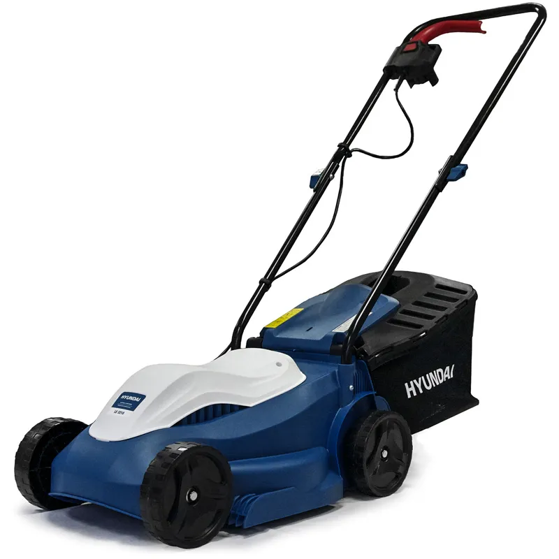 Наиболее оптимальна данная модель на площади до 500 м², а радиус ее действия ограничен лишь длиной провода. Электрическая газонокосилка Hyundai срезает траву на высоте от 20, 40 или 60 мм. Для сбора скошенной травы предусмотрен тканевый контейнер емкостью 30 л.