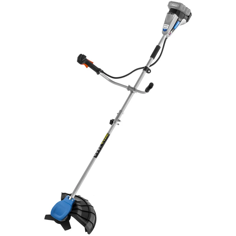 Аккумуляторный триммер Hyundai HYT 4025 предназначен для скашивания травы на небольших участках, например, возле загородных домов. Инструмент поставляется со шпулей, заправленной леской диаметром 2,2 мм, и стальным трехлопастным ножом. Для работы требуются два аккумулятора по 20 В емкостью 4 Ач, которые приобретаются отдельно. Регулируемая скорость вращения в диапазоне 4000–6200 об/мин позволяет адаптировать инструмент под разные задачи. Благодаря разборной штанге триммер легко помещается в багажник легкового автомобиля, что значительно упрощает его перевозку к месту использования.