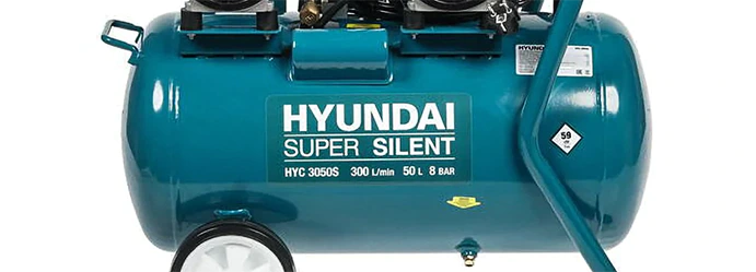 Компрессор подает сжатый воздух со скоростью 300 л/мин., а объем ресивера составляет 50 л. Этого достаточно для работы различных пневмоинструментов: краскопультов, аэрографов, гайковертов, плазморезов и т.п. Потребляемая мощность 2 кВт позволяет подключать Hyundai HYC 3050S к обычной бытовой электросети 220 В.