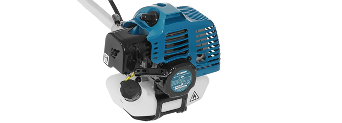 Триммер оснащен надежным двухтактным двигателем Hyundai IC 34 мощностью 1,2 л.с., который развивает до 10000 об./мин. Система Easy start облегчает запуск мотора. Для работы используется смесь бензина АИ-92 и масла в пропорции 40:1.