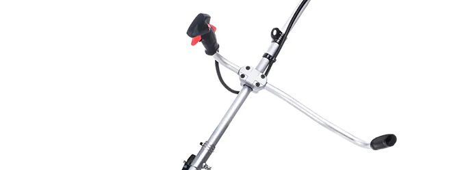 Триммер имеет сбалансированную конструкцию для комфорта и точности при управлении устройством. Широкая рукоять “велосипедного” типа удобна для совершения размашистых движений и обеспечивает полный контроль за инструментом. Мягкие накладки на ручках препятствуют выскальзыванию и снижают вибрацию.