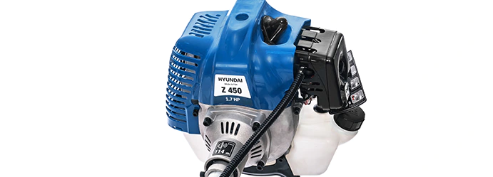 Hyundai Z 450 оснащен фирменным двухтактным двигателем IC 43 мощностью 1,9 л.с. и объемом 51,7 см³. Это обеспечивает высокую скорость и производительность работы. Мотокоса легко справляется как с обычной газонной травой, так и с жесткими сорняками и кустарниками. Для разной растительности в комплекте предусмотрены специальные насадки: катушка с леской толщиной 3 мм и трехлопастной стальной нож.