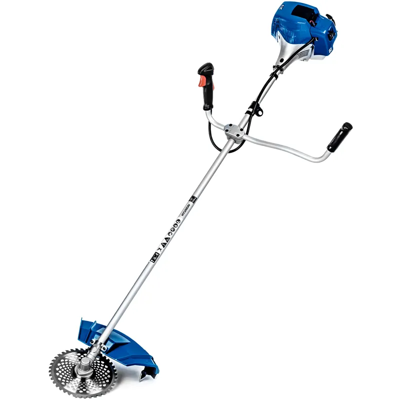 Бензиновый триммер Hyundai Z 535 с ранцевым ремнем в комплекте и двигателем мощностью на 1,4 кВт - рассчитан на интенсивное использование. В комплекте идет сразу 3 насадки, что позволит скашивать разную растительность: от травы до тонких стволов деревьев.