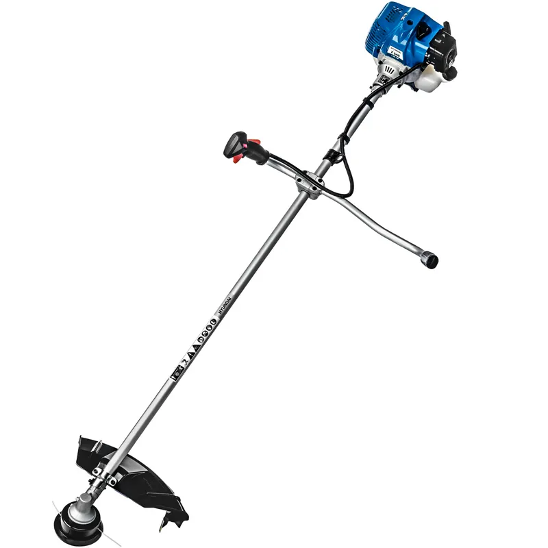 Бензиновый триммер Hyundai с прямой штангой, наплечным ремнем и велосипедной рукояткой позволяет подолгу косить, не испытывая усталости. Косильная головка с леской толщиной 2 мм предназначена для газонной и свежей травы. Трехлопастной нож хорошо срезает высокие стебли и мелкие кустарники. Диск с 40 зубьями измельчает растительность в мульчу для защиты и удобрения почвы.