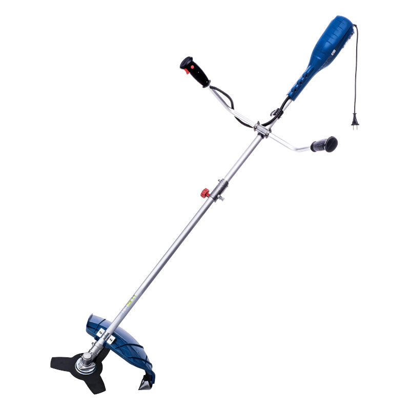 Электродвигатель мощностью 1400 Вт обеспечивает высокую скорость оборотов рабочей оснастки. На триммер можно установить катушку с леской для подравнивания газонов и придомовых лужаек. А металлический трехлопастной нож без проблем справится с кошением бурьяна и высоких зарослей сорняков.