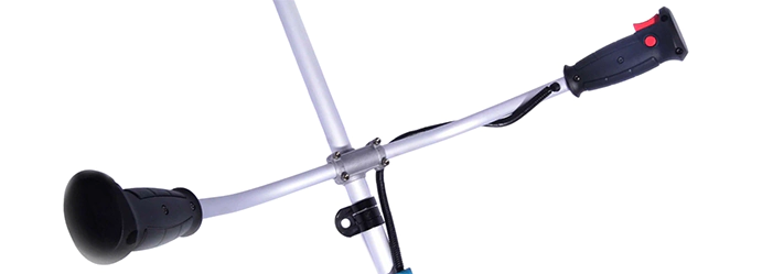 Велосипедная рукоятка позволяет делать размашистые движения косой с захватом большой полосы участка за один взмах. Это обеспечивает высокую производительность кошения. Элементы управления удобно расположены под правой рукой, поэтому вы полностью контролируете работу устройства.