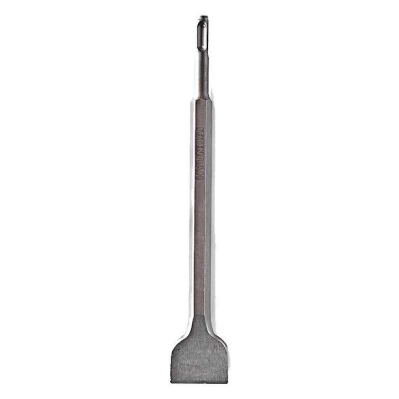 Зубило плоское для штробления и долбления бетона, кирпича с помощью перфоратора Hyundai. Имеет дополнительную заточку наконечника. Хвостовик SDS+ типа.